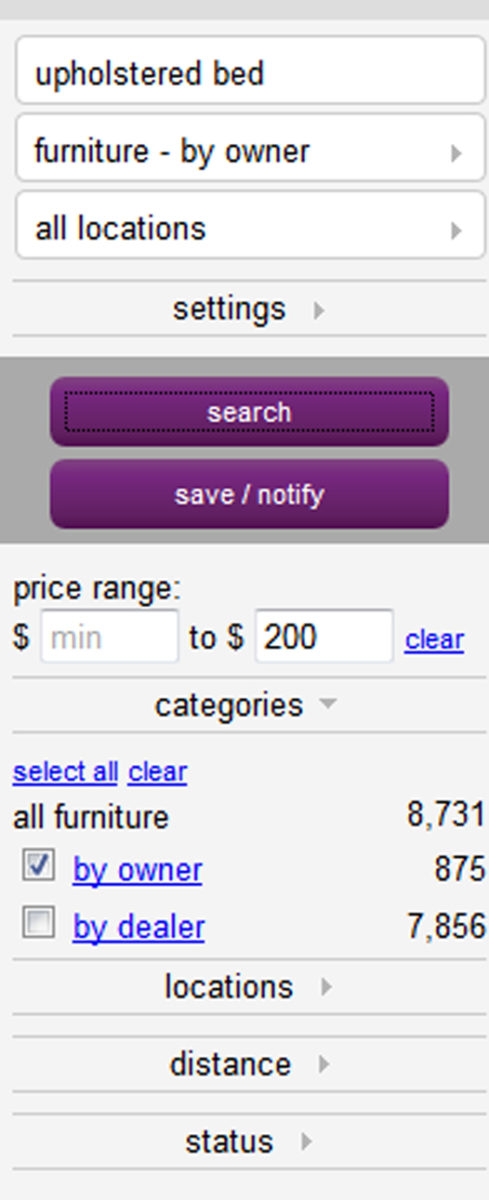 You can even narrow down your search by selecting a maximum or minimum price, selecting multiple categories at once, or setting a maximum distance from your zip code. (Earth-shattering, right? I KNOW, friends. I know.)
